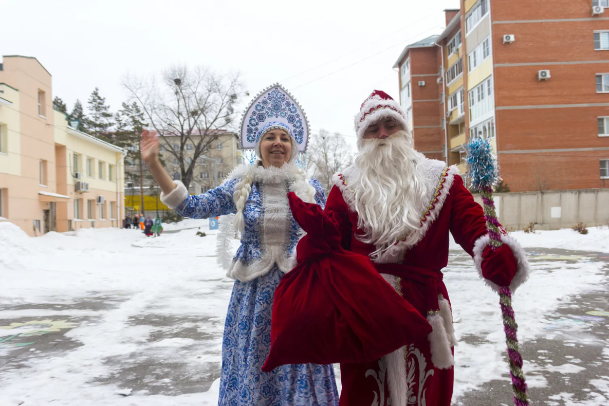 Кроме того, добровольцы подготовили три вида новогодних поздравлений, чтобы поднять настроение постояльцам социальных учреждений разных типов: праздничный концерт, развлекательную игровую программу с Дедом Морозом, Снегурочкой и Бабой Ягой, а также уличный спектакль-сказку, который детки, которым временно запрещено покидать помещение лечебниц, могут наблюдать из окон своих палат.