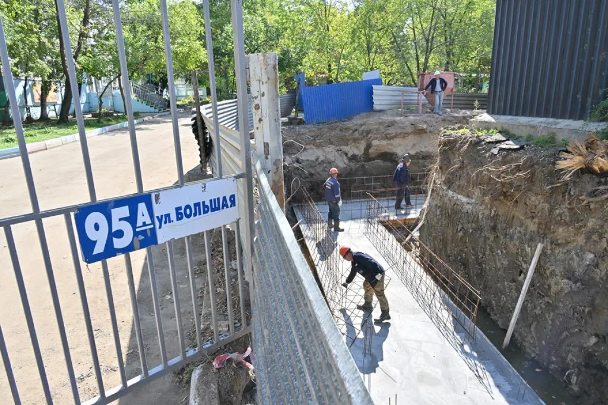 Впервые с 2001 года хабаровские коммунальщики занялись капитальным ремонтом теплотрассы, находящейся в районе улицы Большая. Благодаря данному трубопроводу горячей водой обеспечиваются многоэтажки в районе и детский сад №34. Как сообщает ИА «Хабаровский край сегодня», коммуникации были значительно изношены и давно требовали замены. На сегодняшний день специалисты уже заменили одну из камер теплотрассы, которая теперь стала монолитной. По этой же технологии от неё ведут лотки.
