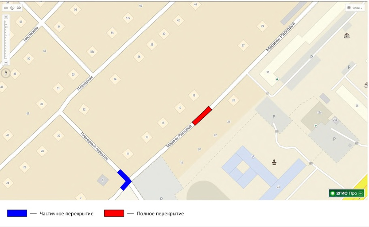 С 10 июля по 23 августа полностью перекроют проезжую часть между домами №17 – 19 по ул. Марины Расковой и половину проезжей части в районе дома №9 по улице Марины Расковой и переулка Планерного.