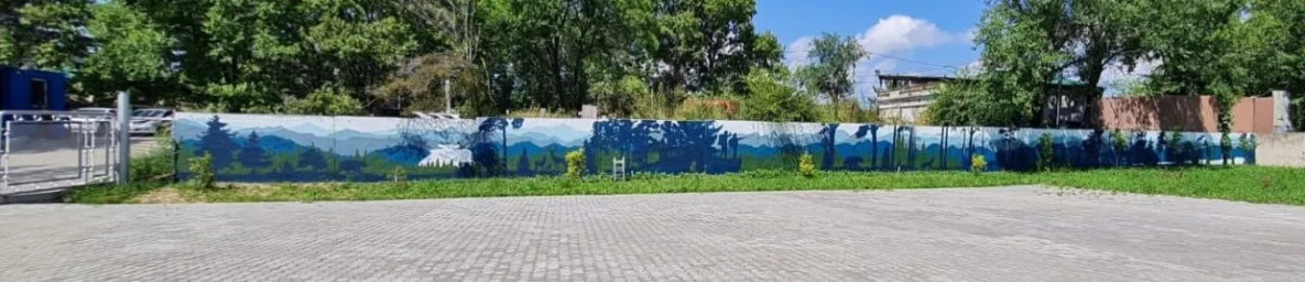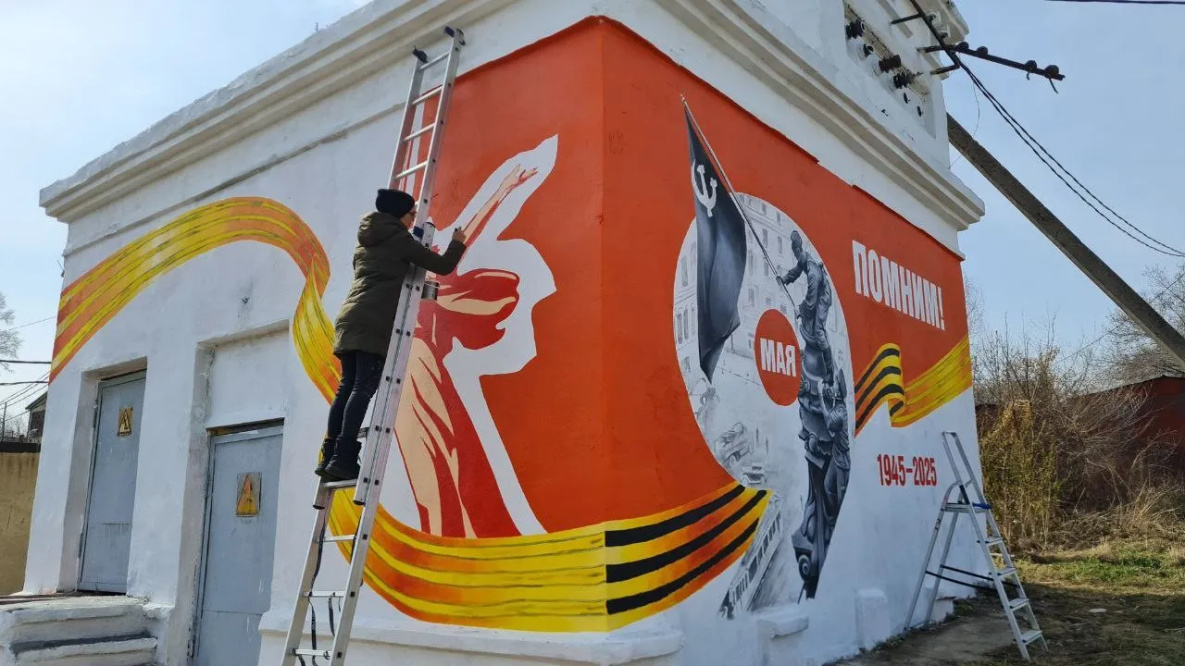протяженное изображение патриотической тематики. Похожее «полотно» заказала себе и еще одна из организаций. Длинную стену хабаровчанка расписывала совместно с работниками учреждения-заказчика – люди выходили в обеденный перерыв, брали кисти и помогали. Сообща получилось быстрее – управились за полторы недели, а истратили на создание более чем 150-метровой красоты 30 литров краски.