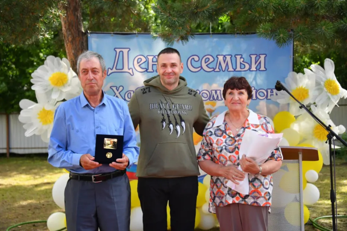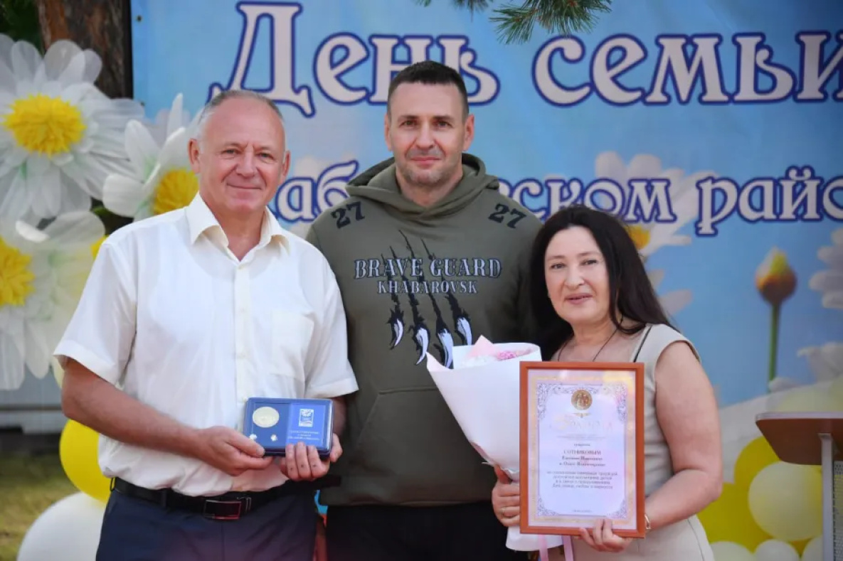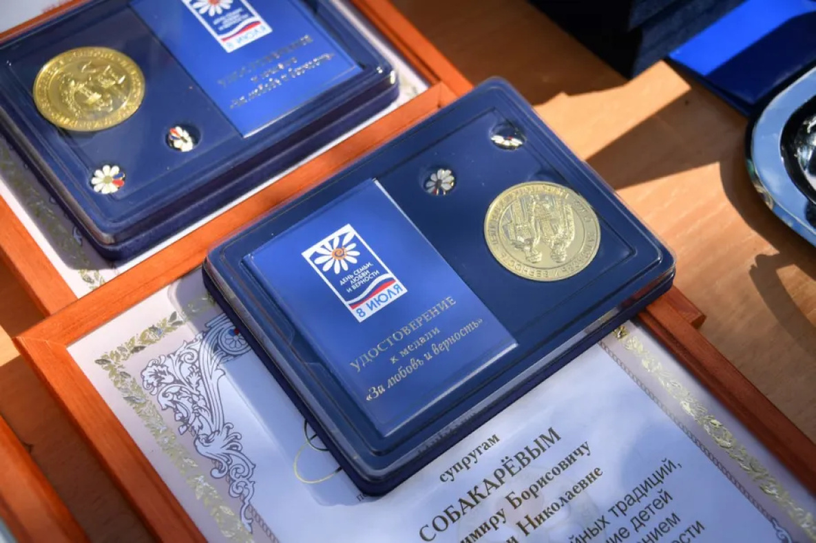 А супруги Собакарёвы и Сотниковы получили из рук главы Хабаровского края медали «За любовь и верность». Эта награда присуждается парам, которые прожили в зарегистрированном браке не менее 25 лет и стали примером для других своей крепкой семьёй, основанной на взаимной любви и верности.