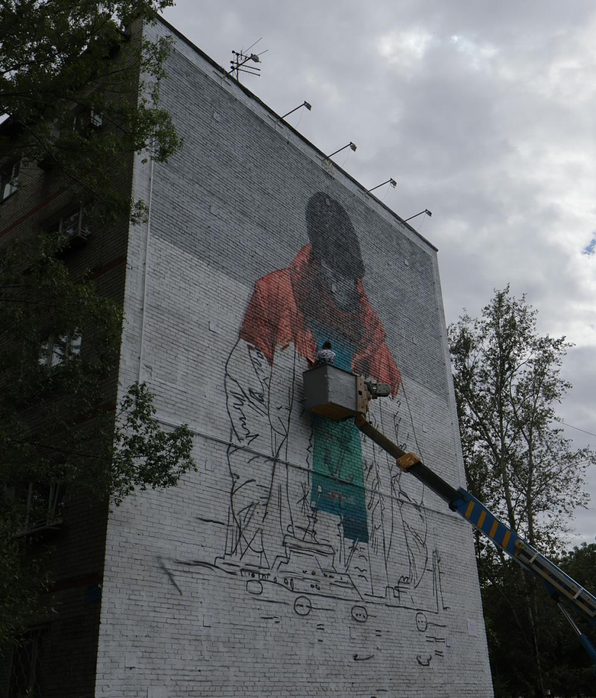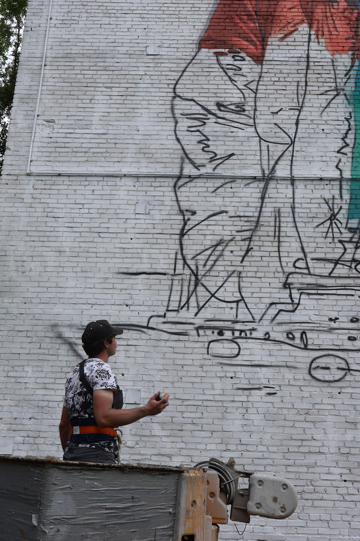 Для нанесения «Душевного полета» ушло уже около 80 баллончиков с краской. Как признается Антон Спутник, подготовить и разметить будущий рисунок несложно, а когда речь идет про детали – это всегда довольно трудоемко. Скажем, в этом случае таким элементом стала куртка – прорисовки требует каждая складка.