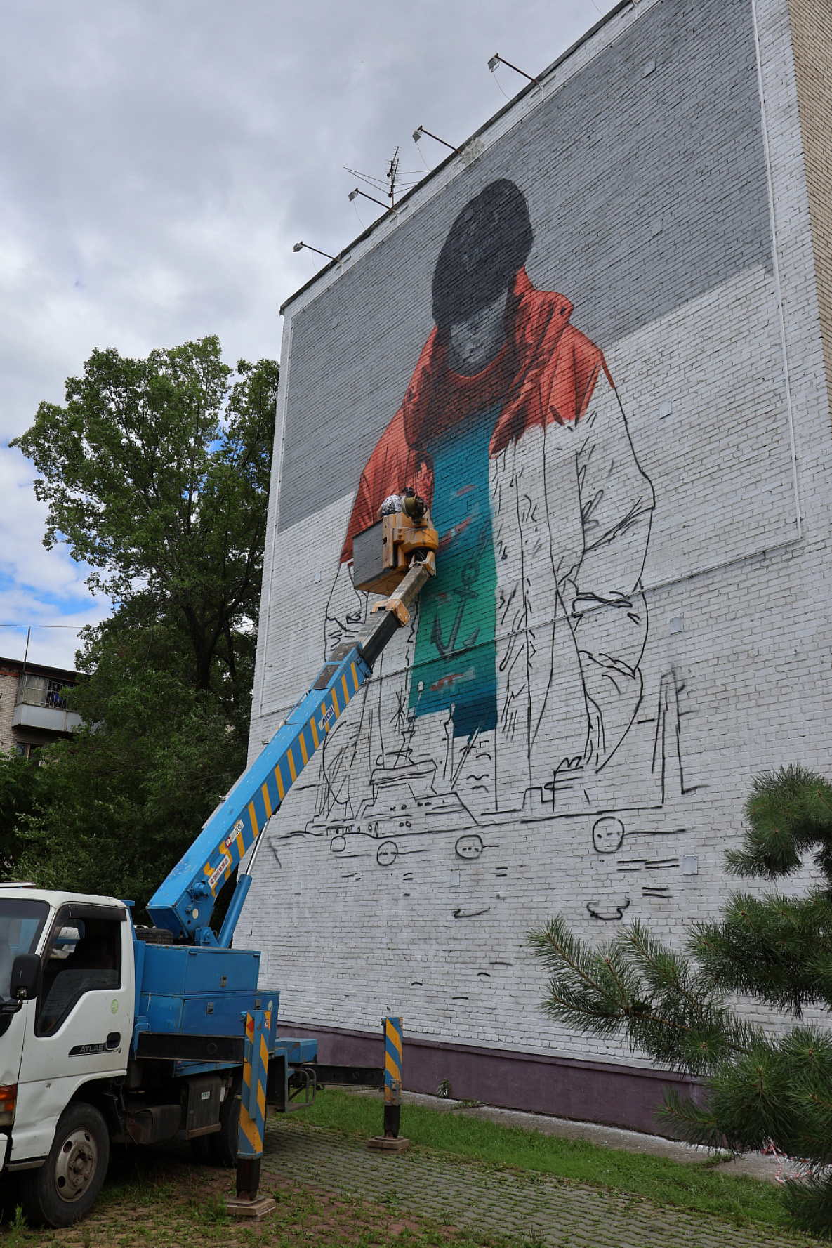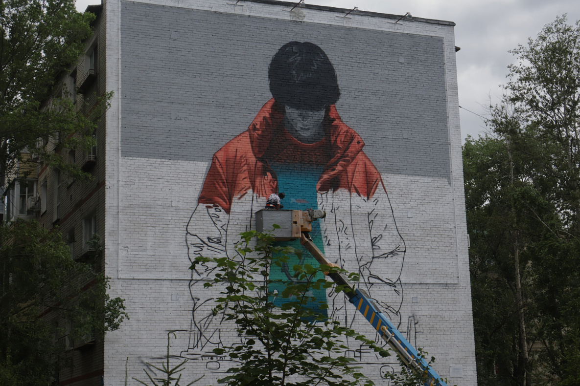 К слову, данный мурал создается в рамках проекта «Метацентры». На территории Хабаровского края он реализуется при поддержке государственной Корпорации развития Дальнего Востока и Арктики, регионального правительства, АНО «Агентство креативных индустрий Хабаровского края» и администрации Хабаровска. Проект «Метацентры: город без окраин» реализуется в нескольких городах и решает художественные и социально-урбанистические задачи: привлекает внимание к городским пространствам и дает современному искусству устойчивое место в городской жизни. Такие арт-объекты помогают создать культурную идентичность городов. В Хабаровске это первая и пока единственная такая работа, но художник надеется, что у него еще будет возможность вернуться в краевую столицу и выполнить целую серию изображений.