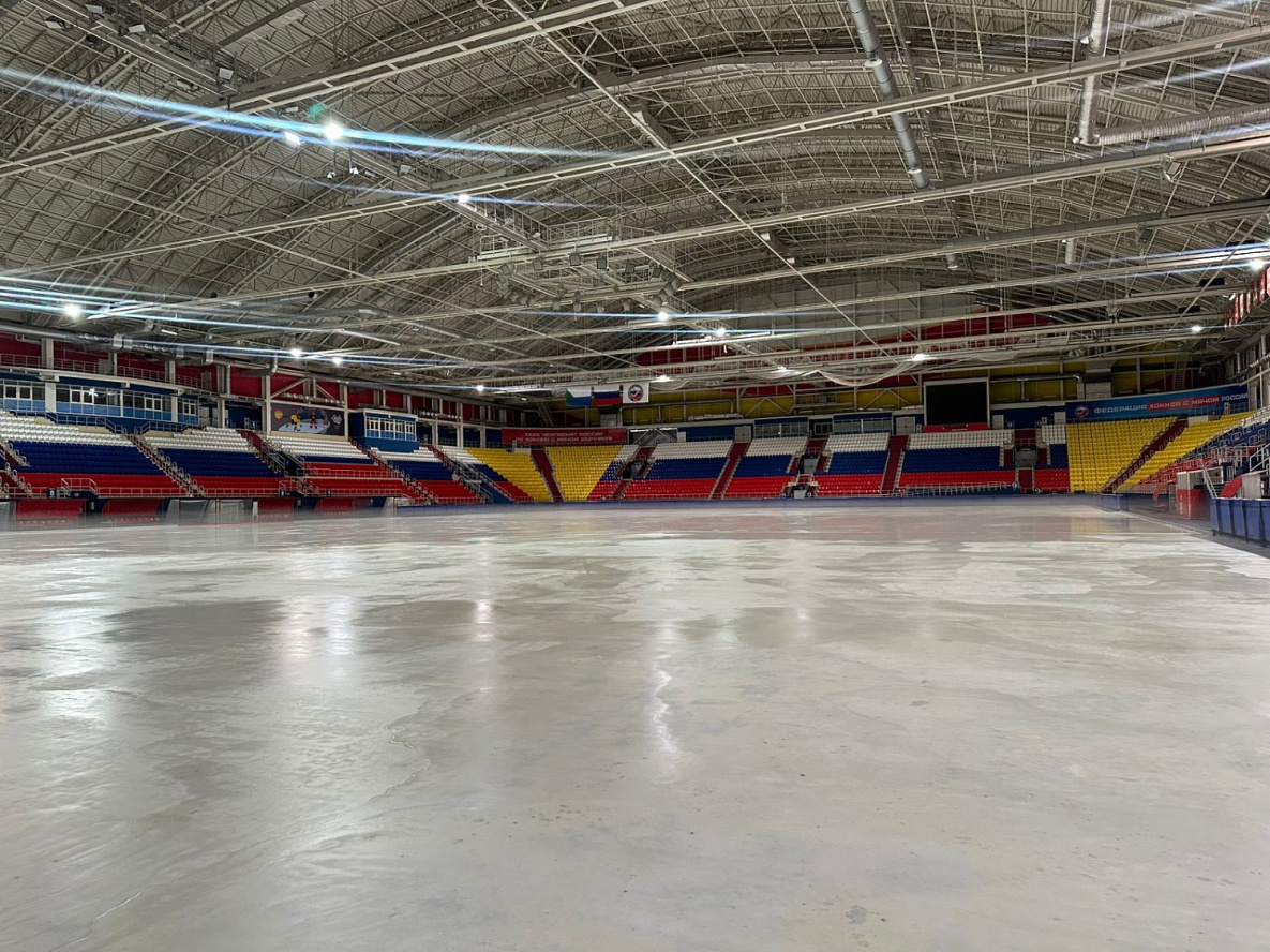 - Изначально специалисты запускают холодильный центр, системы кондиционирования, замораживают ледовую плиту. Спустя определенное количество времени начинается заливка первого слоя льда, - рассказали в КГАУ ДО СШОР «Ерофей».