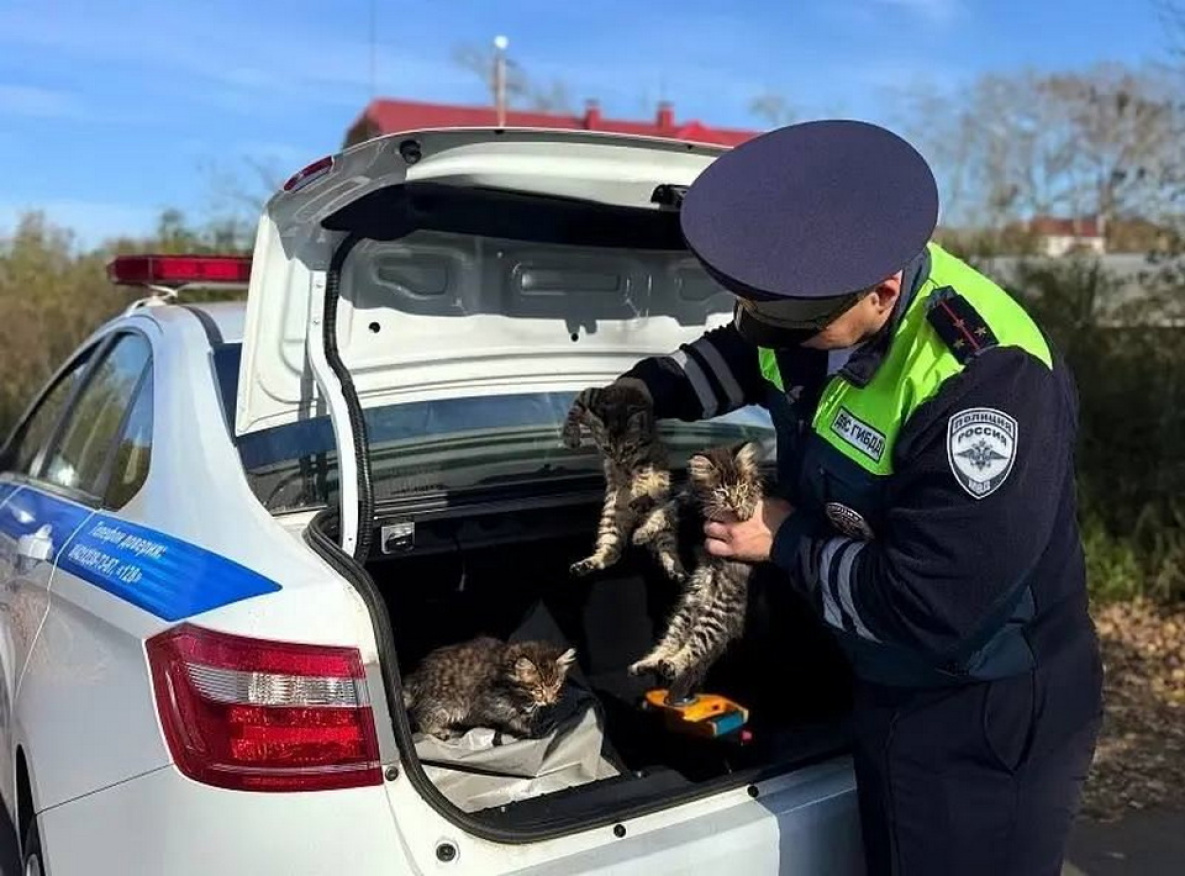 Трех малышей инспекторы ДПС Максим Лукьянов и Роман Новиков обнаружили на обочине оживленной дороги. Они забрали котят, накормили и передали городской службе защиты животных.