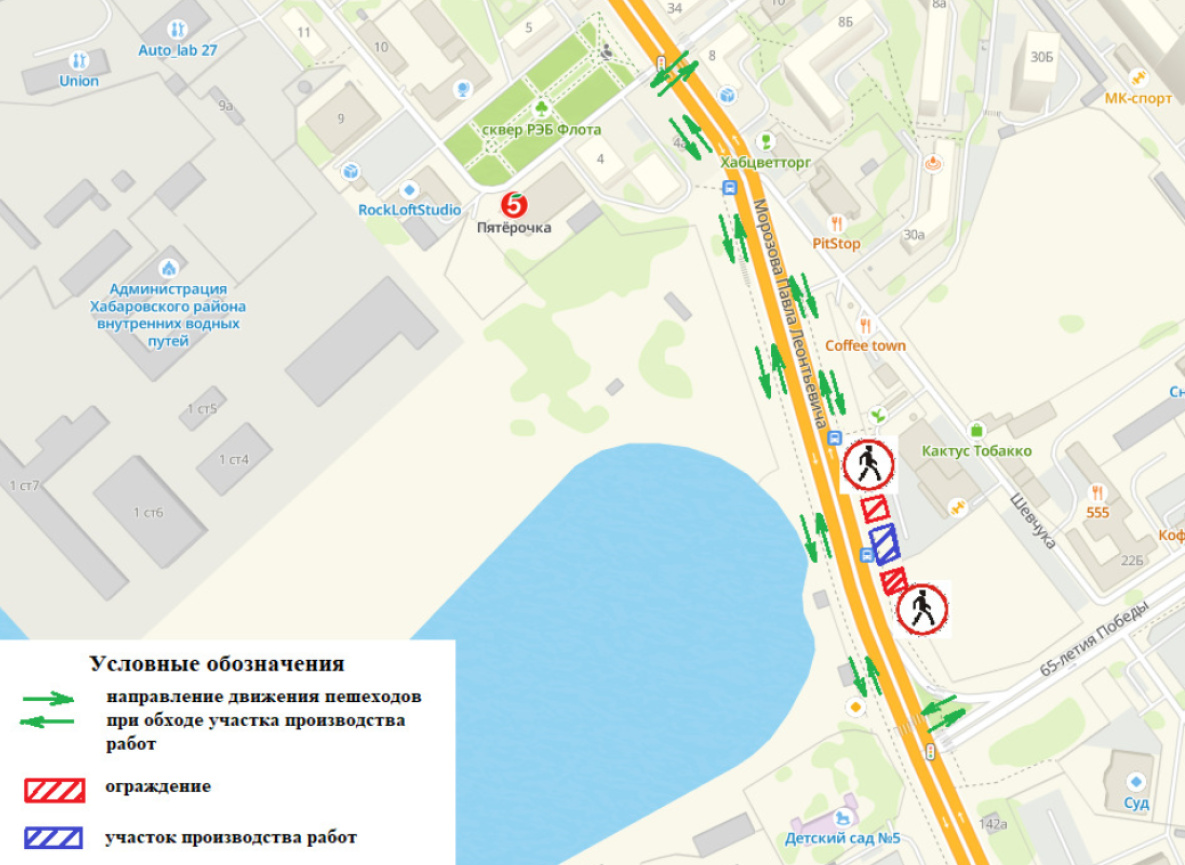 Что касается улицы Павла Морозова — здесь работы будут вестись хабаровским «Водоканалом». По данным пресс-службы муниципального предприятия, с 9 по 12 октября автомобильное движение ограничат в границах улиц Оборонной и 65-летия Победы. Дорога в этом месте полностью перекрываться не будет — сужение полос выполнят на протяжении 200 метров.