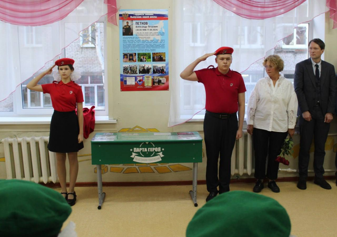 В школе №3 им. А.И. Томилина в Советской Гавани открыли Парту Героя памяти Александра Петкова. Как сообщает информационное агентство «Хабаровский край сегодня», право сидеть за ней получат ученики, которые показывают выдающиеся успехи в учебе, спорте и общественной жизни.