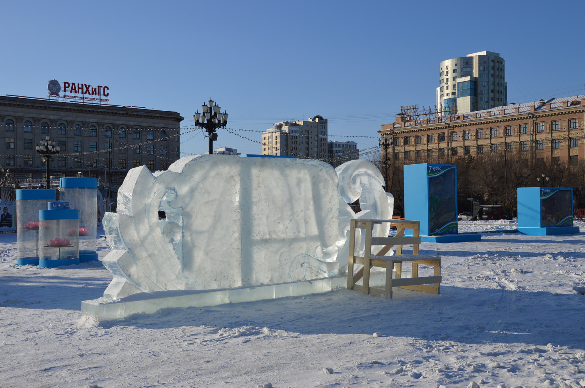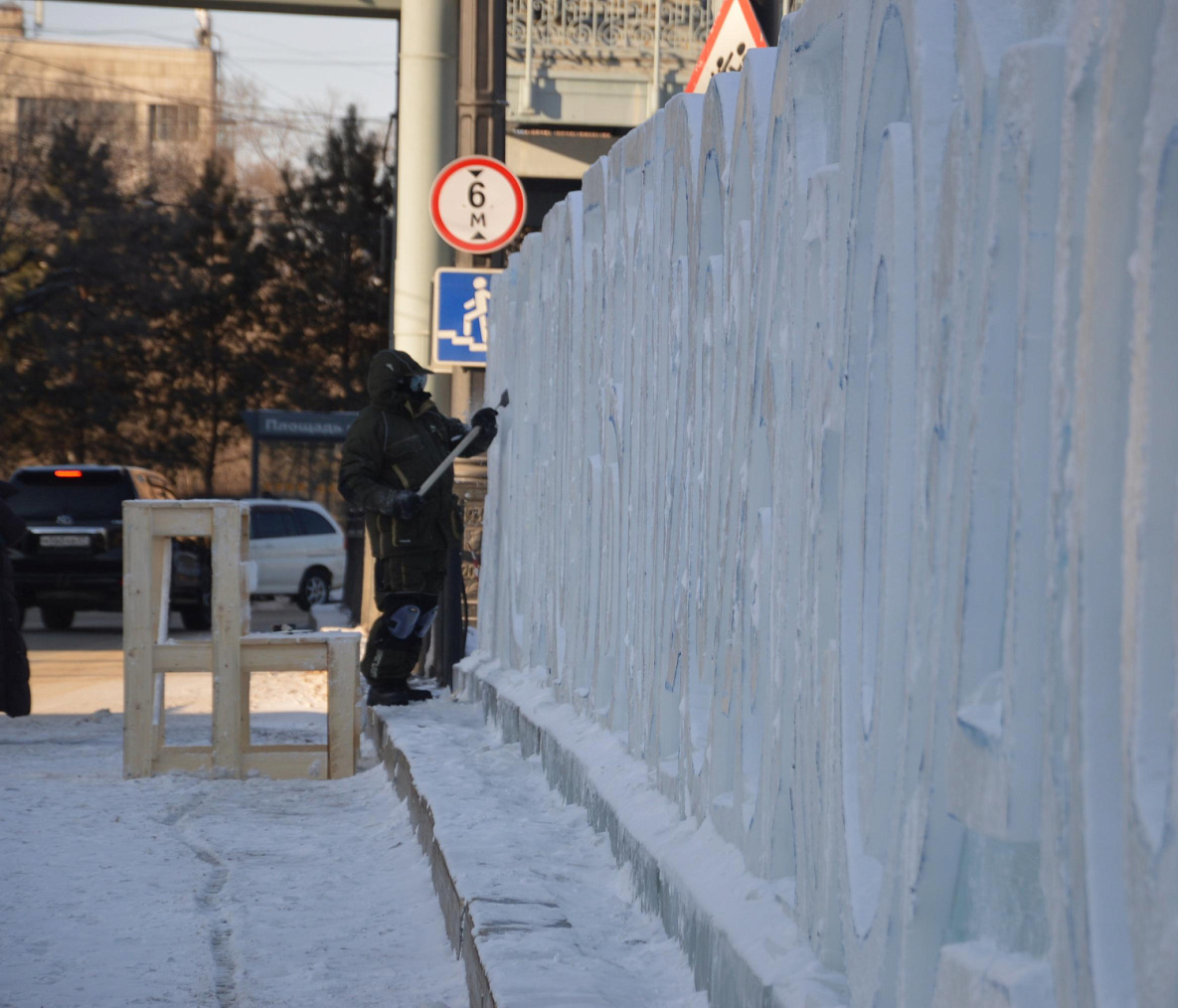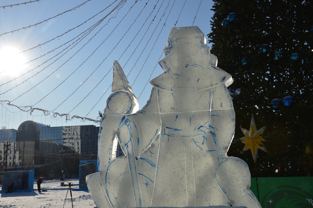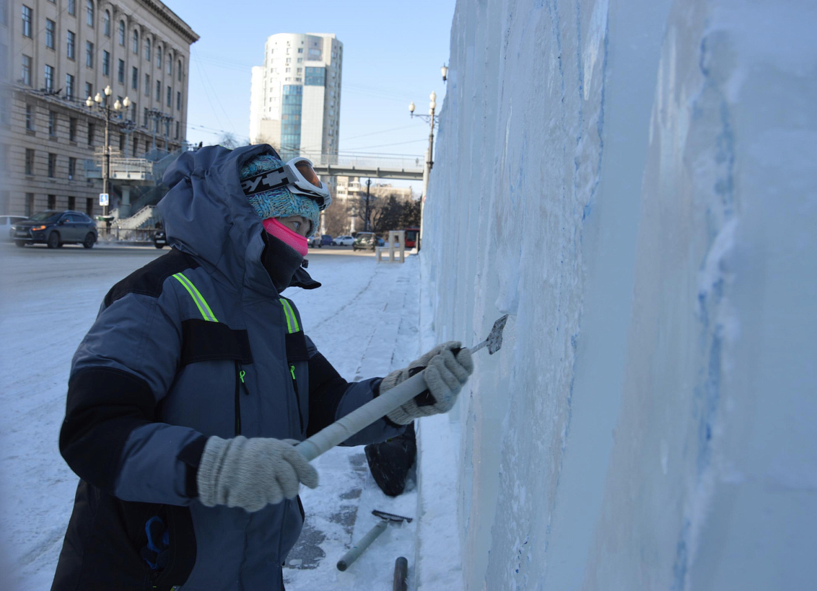 К финальным работам по оформлению новогоднего пространства приступили на площади имени Ленина в Хабаровске. Как сообщает ИА «Хабаровский край сегодня», на центральный праздничный городок завезли глыбы льда, из которых мастера создадут хрупкие фигуры. В этом году ледовые художники вырежут главных новогодних персонажей – Деда Мороза и Снегурочку, символы региона – медведя и тигра, а также логотип Хабаровского края и поздравительную надпись с символом наступающего года.