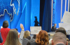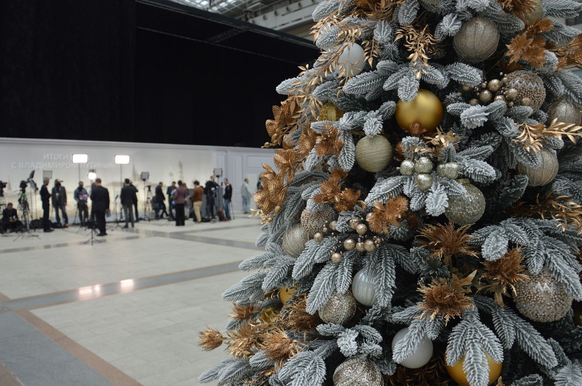 Первыми на главной площадке появились ведущие, чтобы пообщаться с сотнями присутствующих здесь. Затем вышел Дмитрий Песков, который сообщил, что за последние две недели было получено почти три миллиона обращений граждан и ответы на некоторые из них прозвучат сегодня наряду с вопросами журналистов. При этом пресс-секретарь президента попросил формулировать вопросы как можно сжатее, чтобы у большего количества желающих было время задать их. Стоило прозвучать последней фразе, как в зале появился уже и глава государства, и не успел он опуститься на свое кресло, как в воздух тут же взмыли руки и таблички.