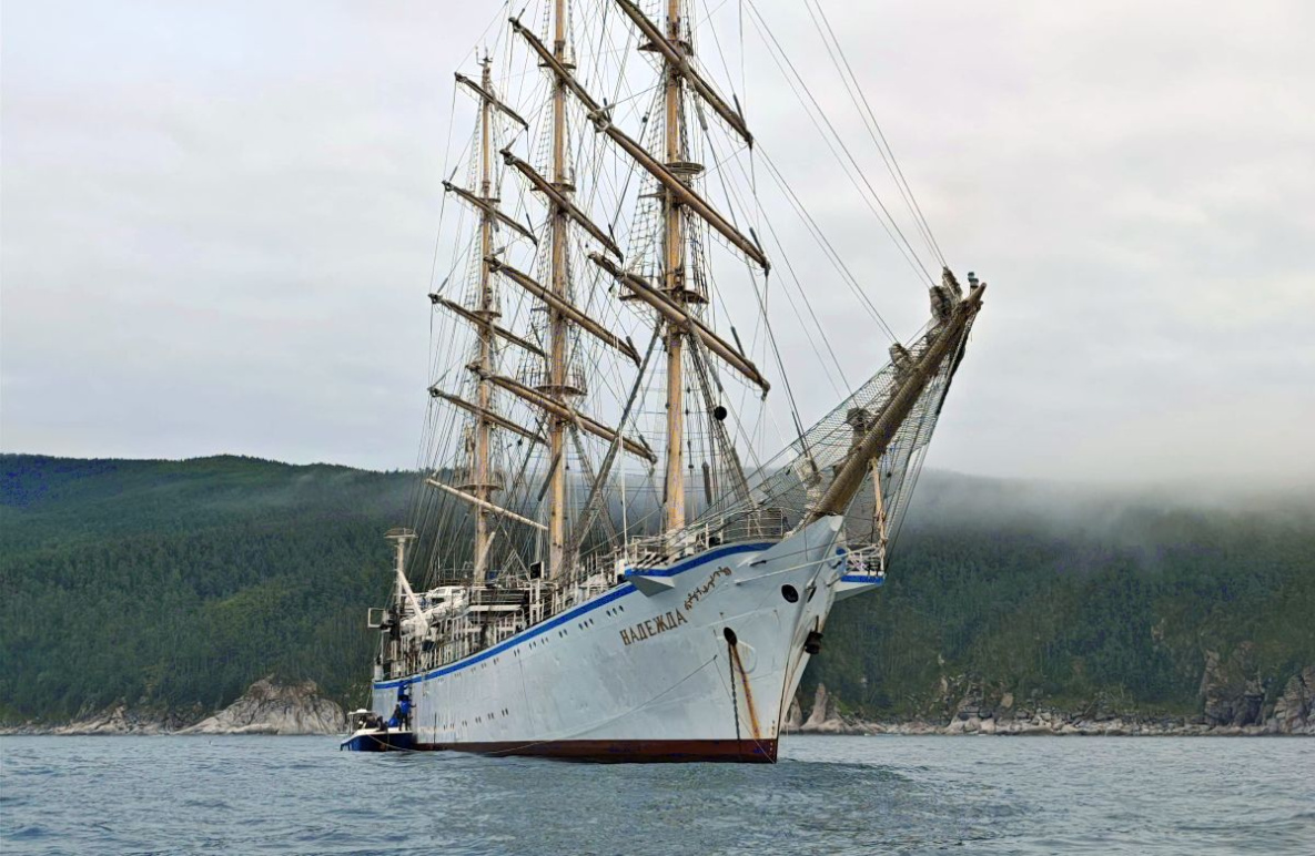 В бухту Врангеля у побережья Шантарских островов в Хабаровском крае накануне во время учебного похода зашёл парусный фрегат «Надежда». Команда из 120 опытных моряков и курсантов Морского госуниверситета имени Невельского увидела жизнь гренландских китов в заповедном уголке Охотоморья и прослушала лекции учёных об этих удивительных жителях моря, сообщает ИА «Хабаровский край сегодня».